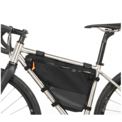 Die Tasche besteht aus strapazierfähigem, strukturiertem Nylon-Außenmaterial und VX21-Stoffen, mit einem abwischbaren unteren Abschnitt, der es einfach macht, die Tasche sauber zu halten, wenn man abseits der Straße oder bei schlechtem Wetter fährt. Gummierte Gurte bieten zusätzlichen Halt am Rahmen und die Gurtbänder, mit einfach zu bedienenden Cam-Lock-Schnallen, halten die Tasche sicher und bewegungsfrei beim Fahren.